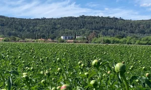 In Frankrijk is water schaarser dan in Nederland, dus is er druppelbevloeiing aangebracht om de pioenen te bewateren en bemesten.